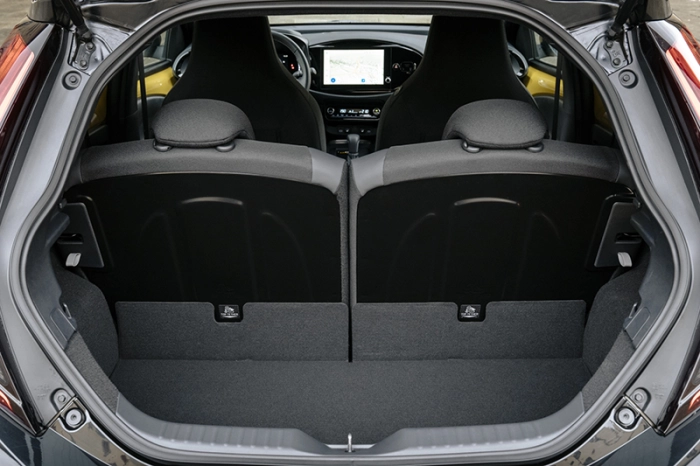 Fini le moteur 1,0 litre : l'AYGO X Hybride hérite d'un bloc essence de 1,5 litre. Cette nouvelle configuration augmente significativement la puissance totale du système de 44 ch pour atteindre 116 ch, promettant des accélérations plus franches et un comportement routier plus dynamique. Pour loger les deux packs de batteries, les ingénieurs ont dû innover en les positionnant côte à côte sous les sièges arrière.
